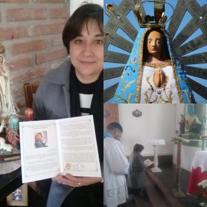 Adriana (de Suiza): “Estimada madre: fue muy hermoso hacer la preparación y poder hacer la Consagración a María Santísima, Sonia me preguntó y le dije que sí y estoy feliz porque pude hacerlo. Aquí le mando una foto de la Virgencita de Einsiedeln y de la Medalla Milagrosa con las cuales armé un altarcito, desde donde seguí la misa por internet e hice mi Consagración. Fue hermoso poder hacerla sobre todo en estos momentos tan triste para todas las personas, deseo pase pronto. Aquí en Suiza ahora ya casi todo ha vuelto a la normalidad, pero la gente tiene miedo y se cuida mucho, creo que está bien, pero todo es diferente. Si Dios quiere deseo hacer también la Consagración al Sagrado Corazón. Muchísimas gracias y feliz semana.”