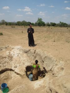La falta de agua es un gran problema. En nuestra misión no estamos exentos. Como ya les he contado, nuestra misión abarca dos parroquias que son limítrofes entre sí (Ushetu y Kangeme), comprendiendo un territorio de 2.300 km2 aproximadamente, con más de 43 aldeas. Hay lugares donde el gobierno ha procurado agua para los habitantes, pero no son tantos. En el lugar donde tenemos el centro de la misión ya tenemos bastante solucionado este asunto, pues tenemos grandes tanques para guardar agua de lluvia, y además tenemos un pozo de agua que gracias a una bomba eléctrica nos brinda agua para todas las casas de formación, para la casa parroquial, la casa de las hermanas, y el dispensario. Este pozo es fundamental para nuestra supervivencia, especialmente en los meses de sequía. También pudimos excavar otro pozo en nuestra aldea, y colocar una bomba manual, para uso de toda la comunidad de donde vivimos.