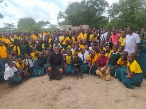 Por gracia de Dios, pudimos ayudar a varias aldeas a tener su pozo, aunque estamos muy lejos de poder darles agua a todos los que necesitan. De todas formas, es una alegría muy grande para nosotros haber podido obtener la ayuda de un donante para hacer un pozo de agua en un colegio secundario del estado. Es un establecimiento que se encuentra a 8 kilómetros de nuestra casa, y allí estudian más de 700 jóvenes. Los colegios generalmente tienen una parte dedicada al alojamiento, pues muchos estudiantes vienen de aldeas lejanas, y se quedan allí toda la semana. También los profesores y directivos tienen sus casas en el terreno del colegio, y por lo tanto se trata de una gran población cercana a la escuela, a la que se suman muchos vecinos.