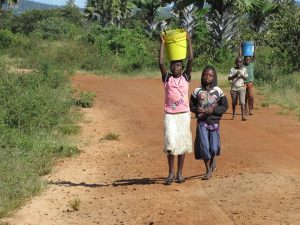 Pero en general podemos decir que el agua es un gran problema. En algunas aldeas tienen pozos excavados por el gobierno, pero no sé realmente en cuántas… creo que podemos contarlos con los dedos de una mano. En la gran mayoría de las aldeas no tienen más que ir a sacar agua en los pozos excavados a mano, o en lugares donde brota agua. Los pozos excavados a mano, muchas veces no proporcionan gran caudal de agua, así que quien los ha excavado, lo usufructúa. Ya sea para su uso personal, o para cobrar a los que vienen a sacar agua, aunque el sistema consiste en un balde y una cuerda, y nada de bombas.