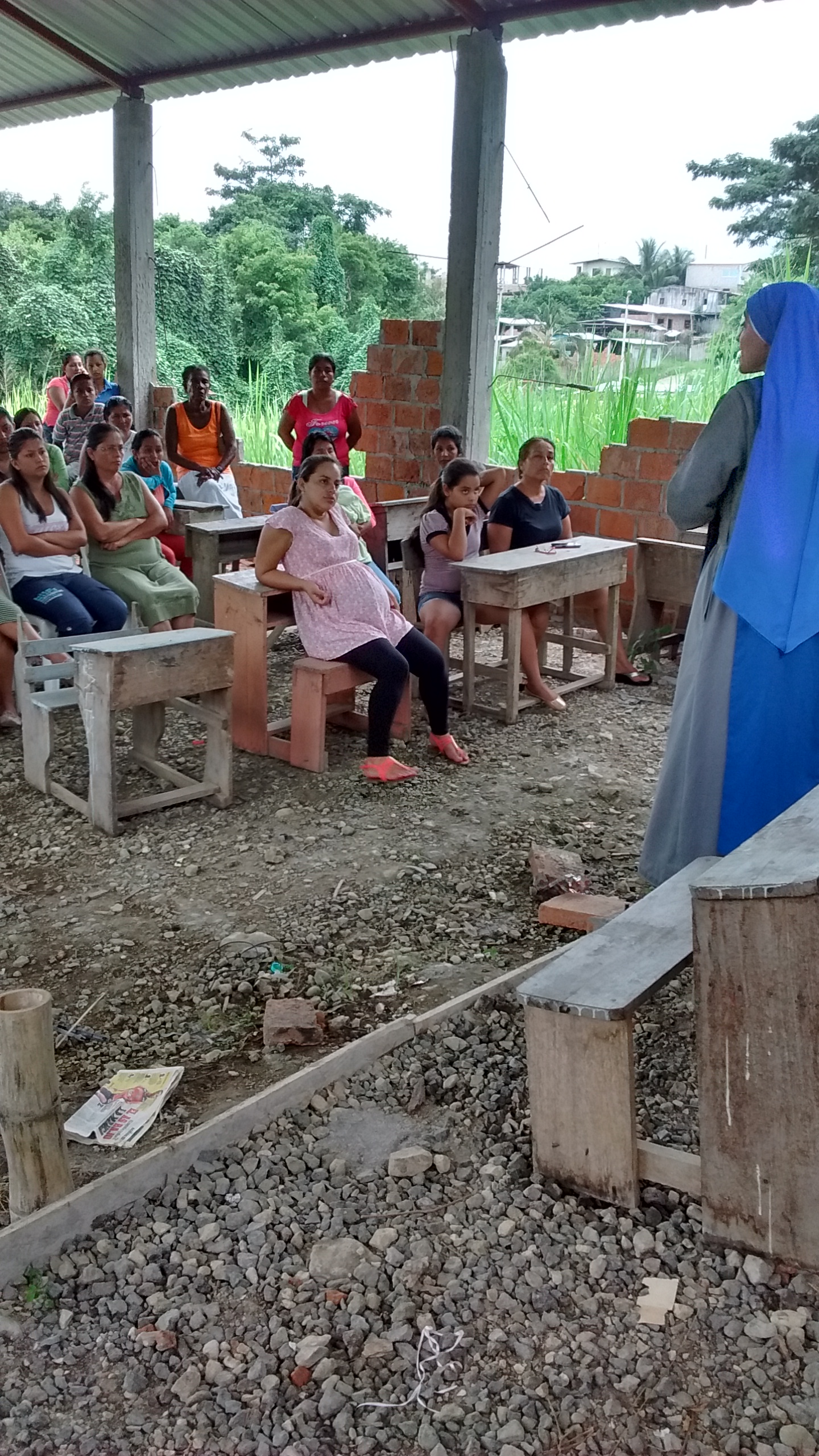 Durante los días que estuvimos, un grupo se quedó en Portoviejo, la zona más poblada, por ser la capital y una ciudad grande. Pero, no tan destruida como la ciudad del epicentro y las que la rodeaban. Allí, un grupo de hermanas y un sacerdote, pudieron asistir espiritualmente a todas las personas que se encontraban en los refugios, todos ellos habían perdido casa y algunos familiares. Pudieron conversar con ellos, invitar a las confesiones, celebrar la santa Misa en los diversos albergues y detectar las diversas necesidades materiales, para informar a caritas que se estaba encargando de distribuir la ayuda que llegaba.