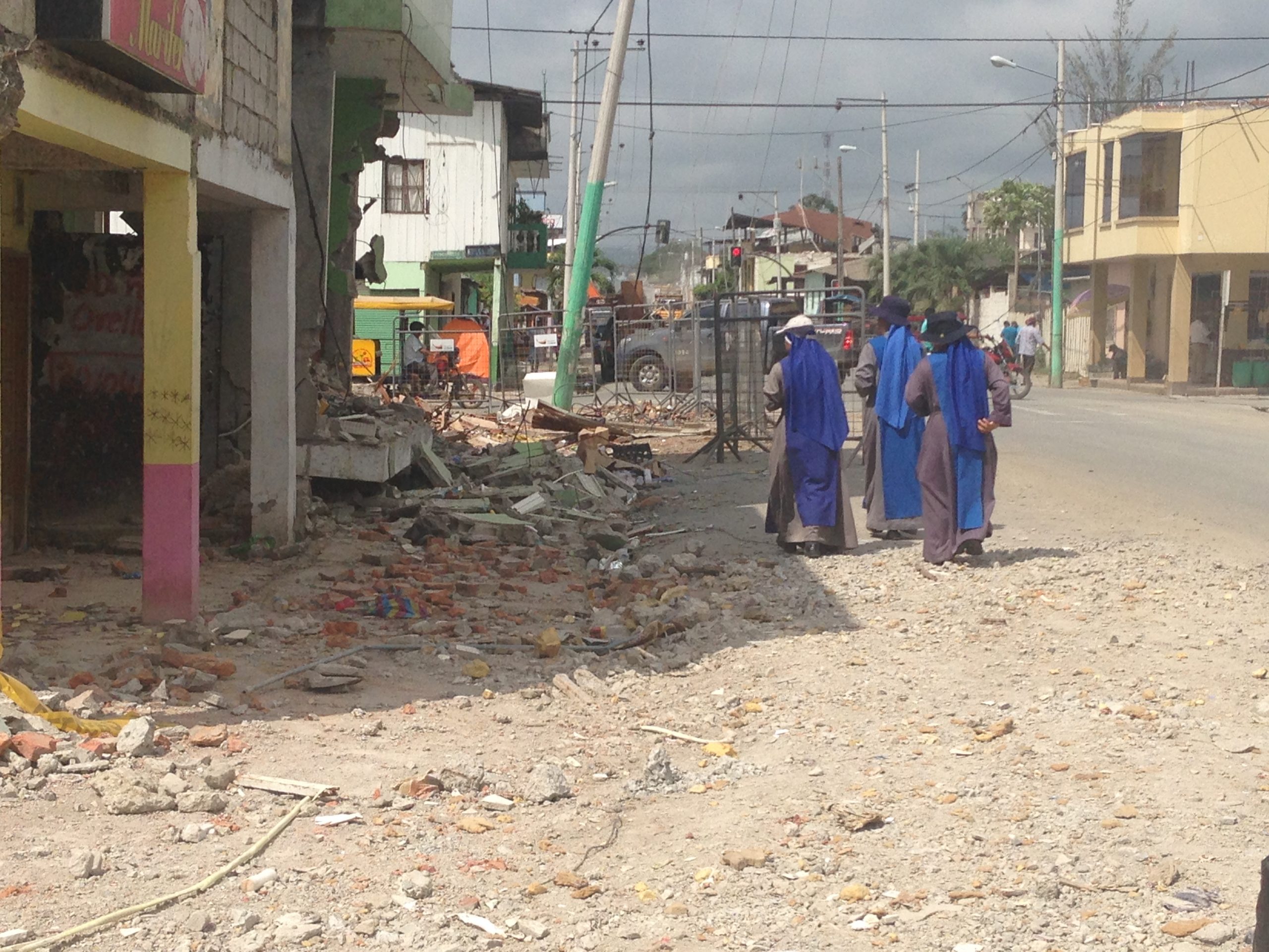 El otro grupo de religiosos, una vez que pudimos contactar a los sacerdotes, se fue a Pedernales, donde fue el epicentro del terremoto. Allí la realidad era más trágica, tanto que, al llegar a la ciudad, uno necesitaba unos diez minutos para “reponerse”, pues estaba todo absolutamente devastado, todavía quedaban cadáveres bajo los escombros, etc.