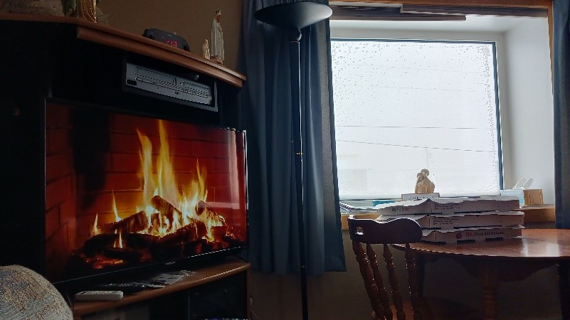 Volvimos a la casa parroquial para el almuerzo y otra vez nos calentaba el fuego psicológico de la televisión. Preguntamos a los padres por qué dejan la televisión prendida durante todo el día con la imagen de un hogar y se rieron contestando que les gusta mirar el fuego. Entonces entendí lo que medio a modo de chiste me dijo un padre antes de dejar Brasil: «Llévate unas fotos de las playas de Brasil. Cuando haga mucho frío míralas y eso te va ayudar a sentir menos frío».