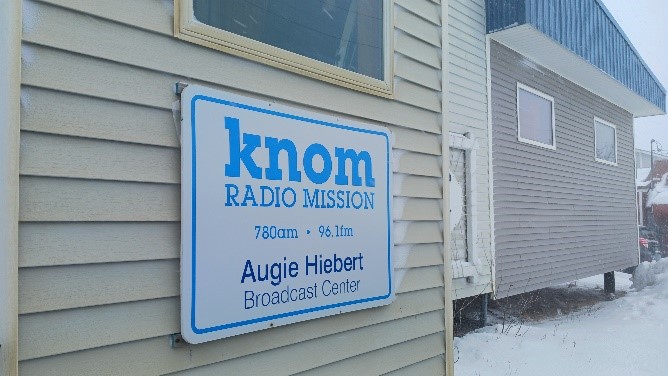 El padre James Poole, S.J., compró una estación de radio, KNOM, que salió en antena el 14 de julio de 1971. Esta misma radio todavía sigue funcionando en Nome y se encuentra a unos pasos de la parroquia.Aunque ahora la radio ya no pertenece a la diócesis, en el contrato que hicieron cuando la vendieron quedó la condición de que KNOM no perdiese su identidad católica. Por eso las músicas y las entrevistas que hacen en vivo son siempre de acuerdo a los principios morales y éticos, muchas veces propiamente católicos. Padre Alfonso nos llevó para conocerla ya que queda muy cerquita de la parroquia y podía llegar sin peligro.