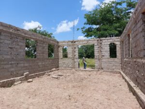Gracias a Dios, y a la donación generosa de un sacerdote del Instituto, hemos podido comprar un terreno de una hectárea, y allí hemos construido una nueva iglesia, de materiales durables, y la semana pasada se ha podido poner el techo. Estos últimos trabajos son tan recientes que no he llegado a sacar fotos.