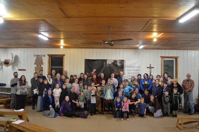 Elegimos como tema para ese día, aquellas palabras de San Juan Pablo II pronunciadas el 30 de noviembre de 1986 en su visita a Australia: «Como va la familia, así va la nación, y así va todo el mundo en el que vivimos». Es un consuelo escribir sobre ese día en familia en Alaska y pensar en esa homilía de San Juan Pablo II, ya que aquí contamos con muchísimas familias numerosas, que se esfuerzan por educar a sus hijos en la fe católica y fomentar las vocaciones en sus hogares.