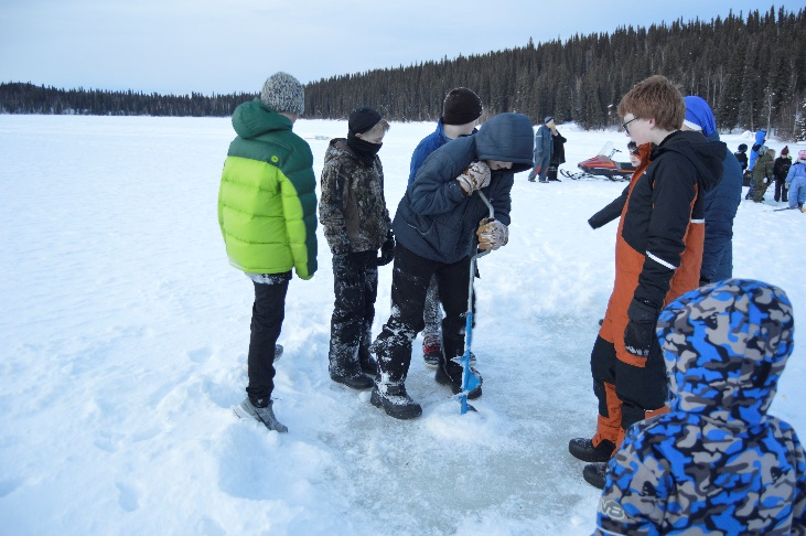 En el lago, las hermanas veíamos cómo los niños sabían manejar todo: desde cómo hacer el hueco en el hielo, hasta cómo matar al pez recién salido del agua. Una y otra vez nos asombrábamos de estar todos caminando sobre un lago congelado; pero para los alaskeños era lo más normal, ya que ese es su mundo.