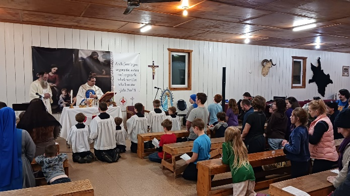 Elegimos como tema para ese día, aquellas palabras de San Juan Pablo II pronunciadas el 30 de noviembre de 1986 en su visita a Australia: «Como va la familia, así va la nación, y así va todo el mundo en el que vivimos». Es un consuelo escribir sobre ese día en familia en Alaska y pensar en esa homilía de San Juan Pablo II, ya que aquí contamos con muchísimas familias numerosas, que se esfuerzan por educar a sus hijos en la fe católica y fomentar las vocaciones en sus hogares.