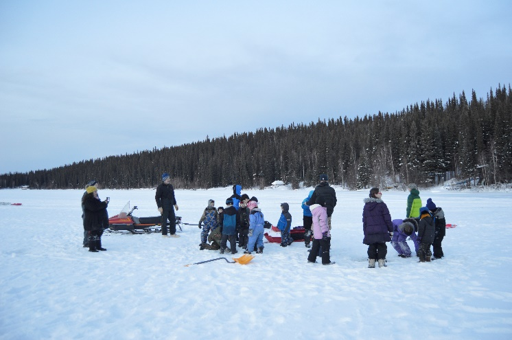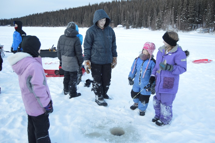 En el lago, las hermanas veíamos cómo los niños sabían manejar todo: desde cómo hacer el hueco en el hielo, hasta cómo matar al pez recién salido del agua. Una y otra vez nos asombrábamos de estar todos caminando sobre un lago congelado; pero para los alaskeños era lo más normal, ya que ese es su mundo.