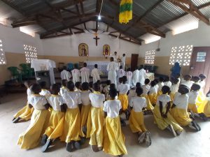 Procesión de Corpus Christi en noviembre… y, en este año 2020 todo ha sido posible, desde adoración desde los autos, y celebraciones por internet. En nuestro caso lo anormal, ha sido el calendario, pues celebramos el Cuerpo y la Sangre de Cristo en el primer domingo de adviento. La razón fue que debido a la pandemia, en la fecha propia del calendario para celebrar esta gran fiesta, el gobierno había pedido que no se realizaran encuentros de muchas personas, ni procesiones. Entonces los obispos de Tanzania recomendaron que hagamos una fiesta pequeña, y que si Dios quiere, y cuando todo mejore, se podría realizar la procesión con gran solemnidad, como se merece. Gracias a Dios, y a tantas oraciones, en estas zonas la pandemia no ha tenido efecto, y por eso mismo recibimos la indicación de celebrar el Corpus Christi antes de que termine el año.
