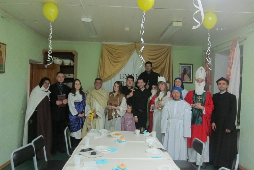 Siempre es bien celebrada, en nuestras parroquias, la Solemnidad de todos los Santos. Como es habitual el centro de la festividad fue la Santa Misa presidida por el P. José López, párroco de nuestra parroquia de la Inmaculada. Por la noche se hizo una actividad formativa y recreativa con los jóvenes. Cada uno eligió un santo, al cual represento con un disfraz, y expuso de modo breve la vida del mismo. Después de Cena, las hermanas organizaron el clásico juego de la Oca y búsqueda del tesoro. Al domingo siguiente se celebró la festividad con la comunidad de fieles. Los niños, a cargo de la hermana Bienaventurada, representaron también a diversos santos, luego de lo cual partieron para realizar una salida en el teatro de títeres de la ciudad.