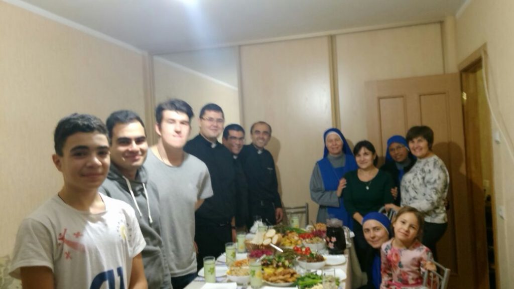En las fechas del 20 y 21 de octubre respectivamente les dimos la bienvenida a los nuevos misioneros, los Padres Geovanny y Hernán. Al domingo siguiente a su llegada celebramos la misa los tres padres y se hizo el recibimiento con toda la comunidad parroquial en la que se organizó un pequeño almuerzo a la canasta con los fieles. Los padres ya, por gracia de Dios, se encuentran estudiando en la universidad aprendiendo la lengua Rusa preparándose intensamente para la misión.