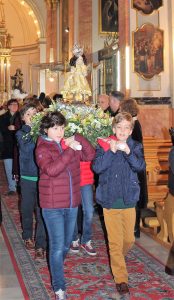 Propiamente nuestra presencia en Alcoy comenzó en febrero de 2017, con la presencia de dos contemplativas, ayudadas por una tercera hermana apostólica o contemplativa que se iba alternando. De este modo pudimos mantener abierta la iglesia y funcionando el monasterio. El 16 de enero pasado llegó a la comunidad la M. María del Monte Carmelo. El 20 se completó la comunidad, constituida por cinco hermanas y bajo el patrocinio de San Juan de Ribera.
