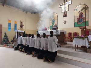 Hemos terminado el 31 de diciembre con el cuarto campamento, pues tuvimos dos campamentos de varones antes de la navidad, y otros dos para niñas, entre navidad y año nuevo. Entre todos los campamentos hemos tenido en total 1.140 niños con nosotros, por cinco días. Estas actividades siempre son muy cansadoras, por la cantidad de niños, y por ser tan pocos nosotros para asistirlos. Demanda mucha entrega y sacrificio. De manera especial a las hermanas, pues las niñas siempre son mucho más numerosas que los varones. Este año fueron 830 niñas, y el campamento de Kangeme el más numeroso, con 473 participantes.