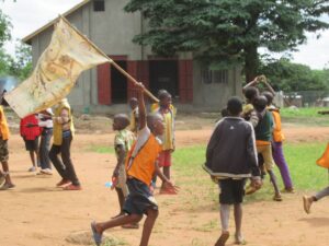 Quería contarles una sencilla anécdota que me alegró mucho. Fue como si Dios hubiera enviado un ángel en medio de los campamentos. Entre tanto trajinar, con tanto trabajo desde las compras, la comida, las cocineras, la misa y las confesiones, los juegos y los premios… y mil imponderables que van surgiendo, Dios tuvo una delicadeza. En el campamento de niñas de Kangeme, en la cena del segundo día se les hizo la comida de fiesta, por ser el día de los Santos Inocentes. Yo recogí mi plato con comida y una gaseosa (había para todos), y me senté al costado de la iglesia, donde había luz. Algunas niñas se fueron sentado cerca, pero siempre son muy tímidas para conversar con alguien mayor, y más si es un varón, pues así es la cultura de aquí. Sin embargo, como ya nos conocen de hace tiempo, esta barrera no es tan fuerte. Así fue que vino una niña pequeña, de ocho años, según ella me dijo, y de quien no recuerdo el nombre ahora. Espontáneamente comienza a hablar, comentándome a mí, pero también a otras que estaban cerca suyo: “En este campamento no hay como extrañar la casa… Jugamos, rezamos, subimos a la montaña, comemos comida de fiesta… Yo espero toda la semana poder venir a la iglesia el domingo, a rezar y a jugar en el oratorio”. Y así siguió con cosas por el estilo, comentadas por sus amigas, y reafirmadas por algunas de ellas. La breve conversación se vio interrumpida por el sonido del silbato que las llamó a todas a formarse en sus equipos, y comenzar a gritar los nombres de sus patronos. Se perdió ese “ángel” en esa marea de 473 niñas.