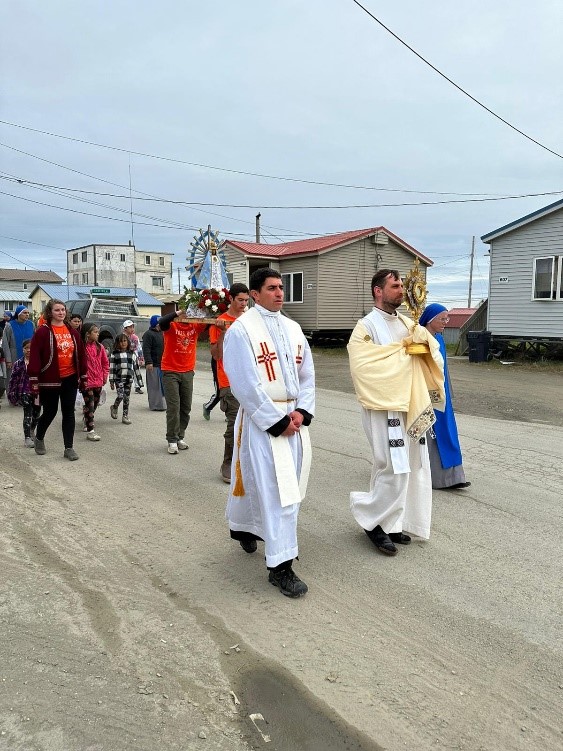 Los días de la Misión pasaban, seguíamos visitando las casas y, aun con todo, los adultos no venían a la iglesia ―ni siquiera los católicos. En tales circunstancias, el día en que hicimos la procesión del Corpus Christi fue del todo especial para todos los misioneros: si la gente de Nome no venía a ver a Jesús, el Jesús de Nome salía por las calles para ver a su gente.