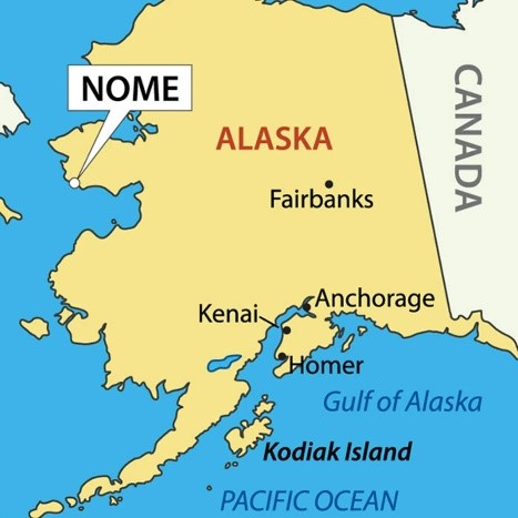 Fairbanks dista de Nome 839 km. Para llegar hasta Nome no hay carreteras, solo se puede llegar en avión. Pero en Fairbanks no salen vuelos hasta Nome, es preciso viajar a Anchorage y allí tomar el avión hasta Nome. Eso es ir del norte al sur (576 km), y del sur al norte otra vez (874 km).