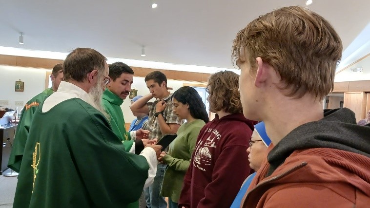 En la Santa Misa de envío de los misioneros el lunes por la tarde estuvo presente solo una señora, Megan, la secretaria de la parroquia. El sermón de envío era para nosotros, escuchamos bien las palabras del padre sobre la fuerza del envío de Cristo de que vayamos por todo el mundo, sin excepción de lugar ninguno.