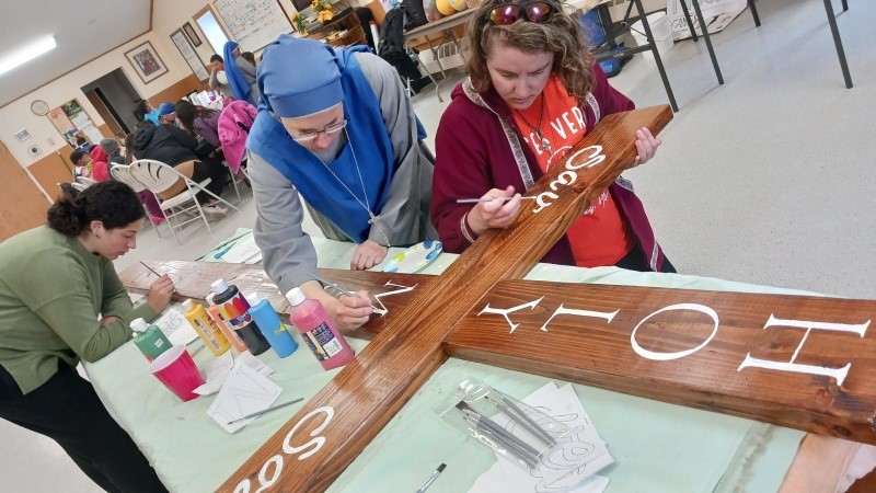 Además del Padre Jaime IVE y de las tres hermanas que estamos en Alaska, la hermana Izamal vino desde la casa provincial de Washington DC para ayudarnos esa semana. Nos acompañaron también cuatro jóvenes y un diácono permanente de nuestra diócesis.