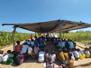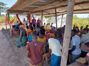 Mientras rumiaba estas cosas, llegamos a la aldea de Bulela. Allí la capilla en honor a san Luis Orione, no ha podido construirse aún por falta de dinero. De todos modos, la gente no se desanima por la escasez de medios, y bajo unas chapas de cinc, que hacen de cúpula y cielorraso, se junta para la Misa o para la Celebración de la Liturgia de la Palabra, como si tuviese la iglesia más linda del mundo. Y así fue que, rodeados por plantaciones de maíz, celebramos la santa Misa, festejamos al santo patrono y rezamos el via crucis.