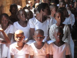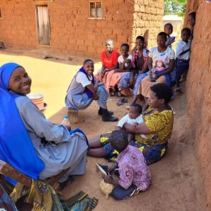 La primera misión se está realizando en la aldea de Namba 11, y allí están los PP. Pablo Folz y Martin Connolly, en un lugar muy alejado, casi a 40 kilómetros de aquí, en el oeste de la parroquia de Kangeme, donde hay muchos paganos, y de hecho son mayoría. La capilla se llama San Ignacio de Loyola. Allí también están las hermanas, algunos postulantes, y jóvenes de las Voces del Verbo. Hoy me comuniqué con el Padre Pablo por medio de mensajes, y me contaba que está costando que la gente asista a los actos misioneros, y que sobre todo tenemos muchos niños. Pero que por supuesto, se hace mucho bien con la visita de las casas y algunos frutos se van viendo.
