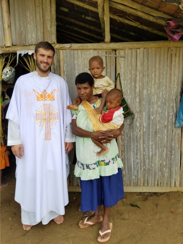 Bueno, mucho más podría contarles, como por ejemplo el cambio en la gente y niños, cómo comenzaron a participar de la Misa con más devoción y consciencia después de algunos días. Allí la gente sólo participa de misas un par de veces al año. Algunos tuvieron que aprender las respuestas del pueblo, por ejemplo. También cómo me pedían que me quedara allí, que no volviera a Vánimo. Querían tener un sacerdote permanentemente con ellos, así que le escribieron una carta al obispo pidiéndole lo mismo. No pedían por mi, sino que pedían que les diera “un sacerdote” para que los atendiera todo el año a ellos y a las aldeas de la zona. Eso me daba mucha lástima… Yo no sabía qué decirles, no me podía poner a explicarles que yo tengo un superior y que yo no podría quedarme a vivir allí sin volver a Vánimo primero… “Sí, escríbanle al obispo”, les decía. Por mi parte solo me comprometí a volver en unos meses a visitarlos, celebrarles la misa y, si la luna nos acompaña, a cazar otro ciervo, por qué no?