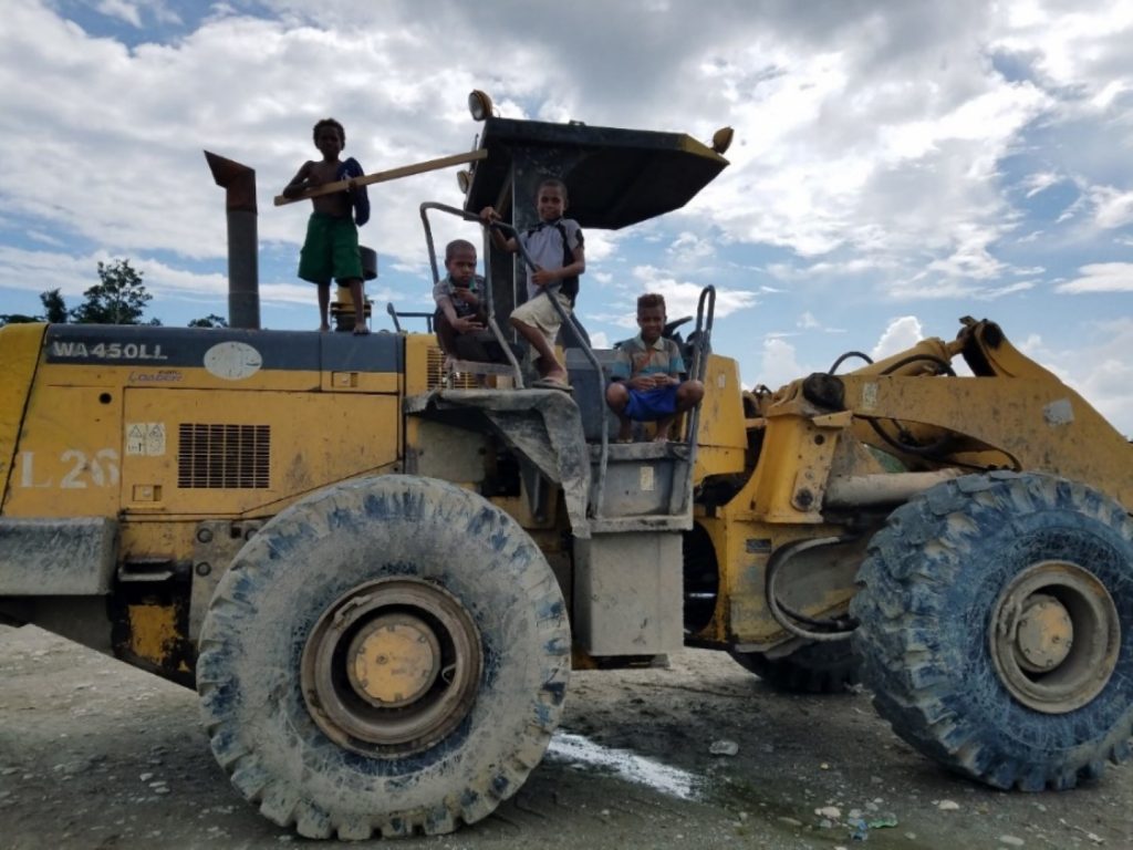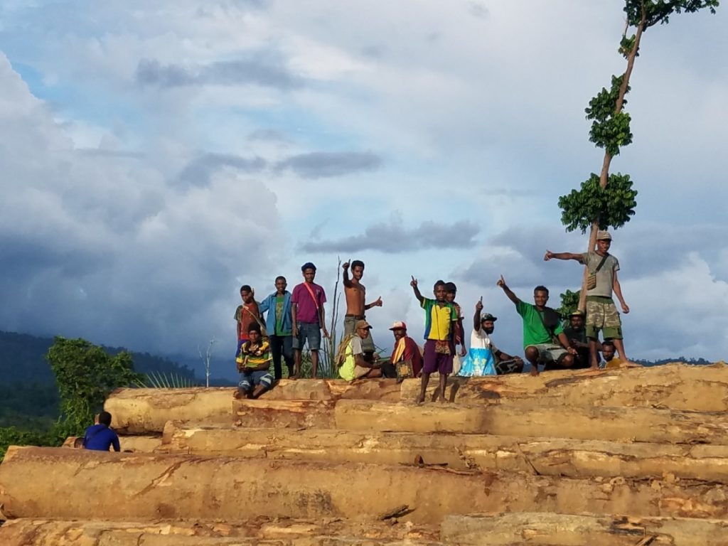 [2] En Papúa hay muchas de estas empresas que se dedican a talar árboles y extraer madera, el recurso más explotado en nuestra provincia, y creo también en todo Papúa. Por ejemplo, solo en el predio de nuestra parroquia hay dos de ellas, cada una con sus puertos de embarque, maquinaria y campamentos en la selva (donde tienen sus casas, talleres, energía las 24 horas, etc.). Son una cosa bien impresionante y contrastante para todos nosotros, siendo que aquí la gente no tiene ni vehículo ni luz y todavía salen a cazar con arco y flecha.