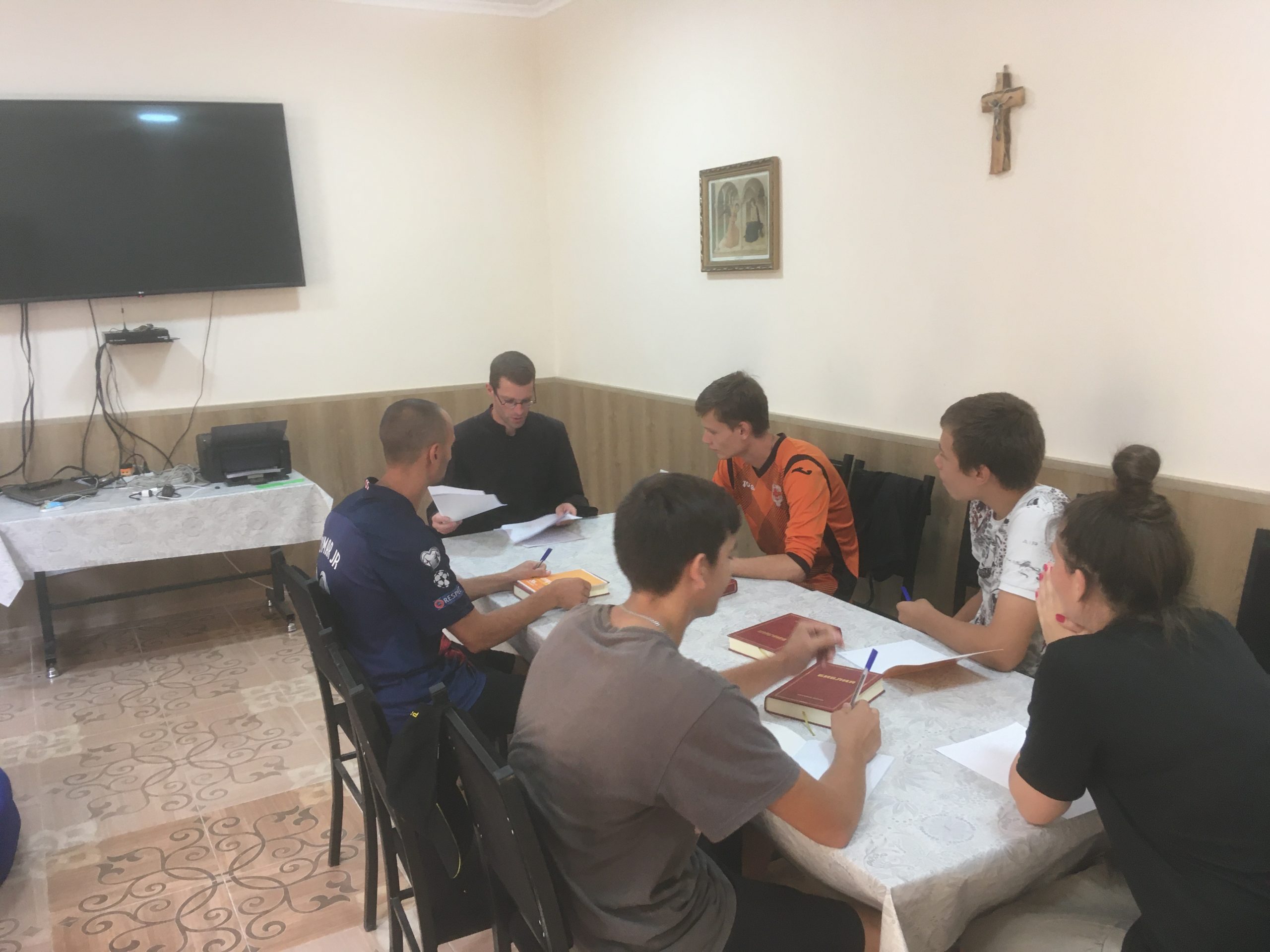 Por gracia de Dios he podido predicar un pequeño retiro de un día a cuatro chicos y una chica en la ciudad de Bojtar (Kurgan Tybe) al sur del país, donde tenemos nuestra segunda parroquia. Para ellos era la primera vez que hacían un retiro espiritual, por eso decidí de darles como meditación el “Principio y Fundamento” de San Ignacio, dividido en dos partes.