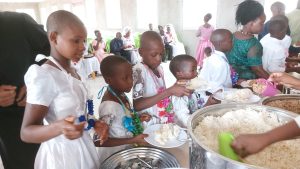 En el caso de los niños de primera comunión, la preparación se realiza una semana antes, con un examen pequeño sobre los conocimientos básicos de la fe, y luego la confesión. DeÈ esa manera el día de la fiesta ya están listos para recibir a Jesús Sacramentado. Los niños que recibieron a Jesús por primera vez fue un total de sesenta. Pudimos ver con gran satisfacción gran devoción con la que recibían la comunión y hacían su acción de gracias a Jesús. El coro que cantó en la misa estaba compuesto por una unión de todos los coros más importantes de otras aldeas, y llegaron a ser 130 coristas.