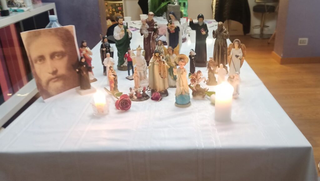Cuando estuvieron expuestas en nuestra capilla las reliquias de la Sagrada Familia, que recorrían las distintas comunidades de Italia, toda la familia de Ludovica vino a rezar pidiendo la gracia de su curación. Deseaban conocer a la hermana que rezaba por ella y se arregló tener una merienda con toda la comunidad. Vinieron Ludovica, su mamá, una amiga, otro amigo, la mamá de la otra amiga… y de repente nos encontramos con un locutorio lleno de niños, ¡lleno de alegría! Se notaba que Ludovica era querida por la gente de la zona y también de muchas partes de Italia y del mundo, que la conocieron rezando por ella a través de los medios de comunicación o escuchando a testigos de la obra que el Señor estaba realizando en ella y en su familia. Hicimos un pequeño fogón para los niños y sus mamás, y ellos a nosotras. Les propusimos, y a los niños no les costó nada aceptar, que iniciaran la preparación para la Consagración a María Santísima usando el libro del Padre Bernardo Ibarra, IVE, y que realizasen la consagración el mismo día que Ludovica haría la Primera Comunión. Había un problema que suele ser común entre los niños: ¡algunos de ellos no sabían leer!, pero el problema se resolvió muy pronto, ya que los hermanitos más grandes y las mamás se ofrecieron a ayudarles.