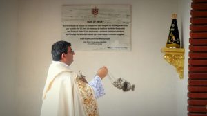 El segundo hecho que queríamos contarles, y no de menos importancia, es que por gracia de Dios ese mismo día pudimos bendecir y dar por concluido en nuestro monasterio San Miguel Arcángel, un campanario que de 12 metros de altura. Es una obra pequeña, pero de gran significado para todos nosotros. Es una construcción muy sencilla de tres niveles. En el arco de entrada colocamos la placa conmemorativa de la bendición y agradecimiento al Príncipe de la Milicia Celeste por su constante protección; también colocamos una imagen de nuestra Señora Aparecida y otra de San Mauro (discípulo de San Benito) patrono de nuestra Diócesis, regalo de nuestro querido padre y obispo, Mons. Jose Negri (PIME).