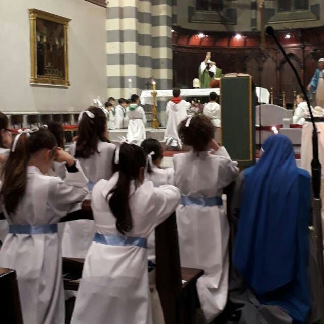 Los labios de los niños… cómo no reconocerlo: hacen reír a los más ceremoniosos. Y no importa qué tan desafinado sea el canto, o desarreglada la túnica, si uno hizo tal enredo con las cadenas del turíbulo y no le quedó más que agarrarlo con la mano para salir del paso, o si algún inquieto se tiró la cera de la vela en la cara… o si uno se tropezó con la alfombra intentando subir al altar… Dios los contempla desde su Santo Cielo con la ternura de un Padre porque sabe que, a pesar de todos sus desaciertos, lo sirven con toda el alma, participan de su Santo Sacrificio con la piedad particular de su corta edad, y cantan, cantan la grandeza de Dios que, puede obrar grandes cosas a través suyo; porque mientras más pequeño, inútil e insignificante sea el instrumento, más brillará la mano del Artista.