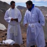 Cuando parecía que ya la salida se quedaba sin cumbre, porque luego de dos días de caminata todavía quedaban unos 8 km para llegar al pie del Etchegaray, y los días no daban para lograr el objetivo, decidimos encarar por una quebrada que daba a la izquierda de nuestro campamento para (al menos) lograr alcanzar alguna cumbre-mirador que nos posibilitara sacar fotos de la zona, para una futura expedición que tuviera el éxito requerido. Pero he aquí que, saliendo a las 11.00 am, llegamos a la cumbre anterior del C° Etchegaray a la cual bautizamos con el nombre de C° Santos Inocentes (4580 msnm), debido a que era 28 de diciembre. Allí pudimos tener la Santa Misa. Como eran las 18.00 hs, decidimos no encarar el desnivel de 500 m que nos separaba de la cumbre del Etchegaray (había que bajar 100 m de desnivel, y luego caminar 600 mas); no era mucho, pero no convenía por el horario, pues bajaríamos de noche por una quebrada que no conocíamos.