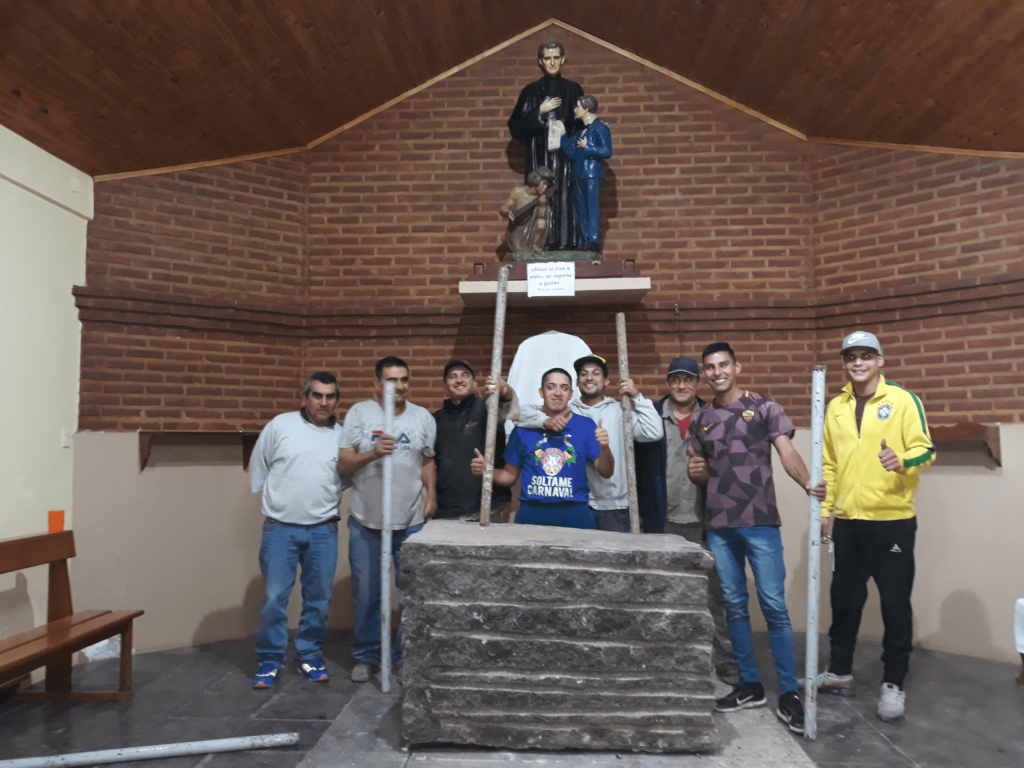 Varios años atrás comenzamos la remodelación de la capilla del Oratorio. Se trajo, pulió y colocó el altar de mármol y se realizó la ampliación de la capilla, pues el espacio ya no era suficiente para la cantidad de personas que asistían los domingos a la Santa Misa y, el año pasado, con la ayuda providente de San José, se colocó el piso y se arregló y pintó el interior de la capilla.