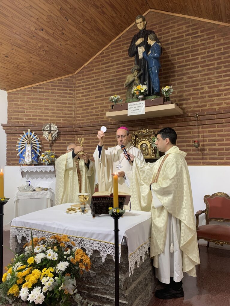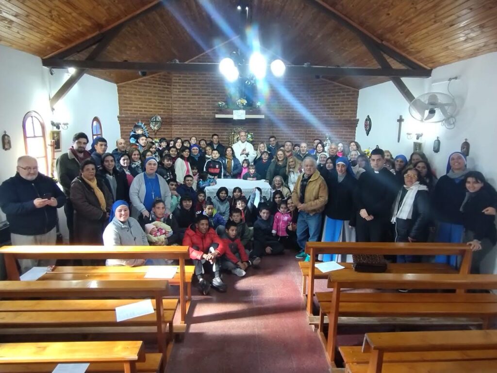 El domingo por la mañana, ya todo listo, tuvo a lugar la ceremonia en la que estuvieron presentes Mons. Víctor Manuel Fernández, el P. Marchioni y el P. Torres, párroco y vicario de Cristo Rey, también nos acompañaron las hermanas de “San José de Cluny” y numerosos fieles.