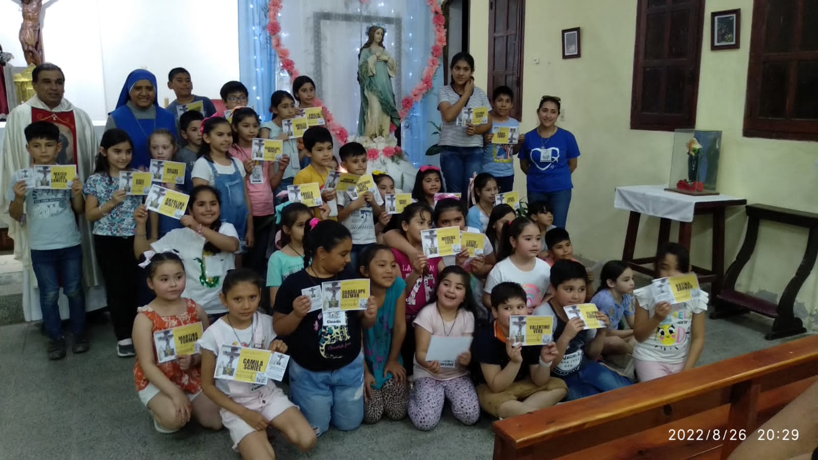 Se le Expone el Santísimo media hora, luego tienen Talleres, merienda y terminan con juegos. Además tienen como Patrona a la Virgen de Guadalupe, ya que nos regalaron una hermosa imagen y es la que va a estar en la Capilla de Adoración. Les pedimos de un modo especial por esta intención, ya que estamos construyendo la Capilla de Adoración, pero siempre por algún motivo se detiene, ahora mismo están detenidos los trabajos. Por demás está decir que son muchas las Bendiciones que se han dado durante este tiempo principalmente en sus Padres que en muchos casos han sido los Niños los que han acercado a sus Papas a la iglesia y lo bueno que los niños ya desde pequeños sepan dirigirse a nuestro Señor Sacramentado, niños que en algunos casos vienen solitos e incluso antes que Soledad y que las Hermanas, de temprano están en la Iglesia.