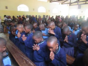 El día lunes 7 de febrero comenzamos con la celebración de la Santa Misa, junto con la comunidad de la parroquia, con el coro, con los nuevos alumnos y sus familias. Nuestras hermanas Servidoras, ellas han llevado todo el asunto de poner en marcha la escuela, un gran trabajo. Sin su ayuda sería imposible. Me alegro de que ellas estén, porque tienen toda la experiencia de la escuela de Ushetu, Stella Matutina, y ahora lo trasladan a esta escuela que está en sus inicios. Los niños estaban muy bien preparados, con sus uniformes nuevos. Lamentablemente sólo tenemos 15 alumnos por ahora, pues es difícil que la gente se acostumbre a enviar a los niños al jardín de tan pequeños, y otros no se convencen de tener que aportar un poco para la educación de sus hijos. Pero en fin, hay que ir de a poco, como sucedió en la escuelita de Ushetu. No fue sencillo en sus inicios tampoco. Recuerdo que los primeros años costaba que enviaran a sus niños, y sin embargo ahora la escuelita de Ushetu está llena de alumnos. Para el inicio de la escuela de Kangeme las hermanas pidieron a un profesor de Stella Matutina que sea el director, con la ayuda de una maestra.