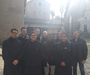 La prima meta, il Complesso Abbaziale delle Tre Fontane, ha aperto il cuore al ricordo del Martirio di San Paolo, il grande apostolo di Cristo. Durante la visita del magnifico monastero dei monaci Cistercensi della Stretta Osservanza (Trappisti), abbiamo conosciuto Alessandro e Mauro, dipendenti laici al servizio della struttura, i quali ci hanno aperto alla disponibilità di ospitare il noviziato per la settimana delle Costituzioni. È stata effettuata la visita delle tre chiese che formano il Complesso: la Chiesa del Monastero dei Santi Vincenzo e Anastasio, tipica architettura cistercense; seguita dalla Chiesa di Santa Maria Scala Coeli, ospitante il memoriale dei 10.203 martiri paleocristiani; fino alla Chiesa del Martirio di San Paolo, nella quale è custodita la colonna usata per la decapitazione del santo, e le tre fontane sorte dai rimbalzi della sua testa. A seguire, è stata raggiunto il Santuario della Vergine della Rivelazione, nel quale si ricorda la recente apparizione di Maria Santissima al veggente Bruno Cornacchiola (1947). In questo luogo, i novizi ed i postulanti hanno rivolto un ricordo della promessa fatta all’inizio del cammino del noviziato alla Vergine Addolorata, questa volta indirizzata alla Vergine delle Tre Fontane, con particolare accento sul ringraziamento della vocazione di Daniele.