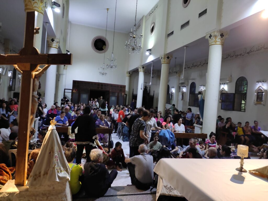 Las hermanas de la Madre Teresa, con sus ancianos y niños discapacitados, también han tenido que huir de su casa arruinada recientemente por un bombardeo y son los nuevos integrantes de este “PESEBRE VIVIENTE”, acomodados en la misma iglesia y en algún otro lugar de la escuela que la rodea, en el predio de la Parroquia.