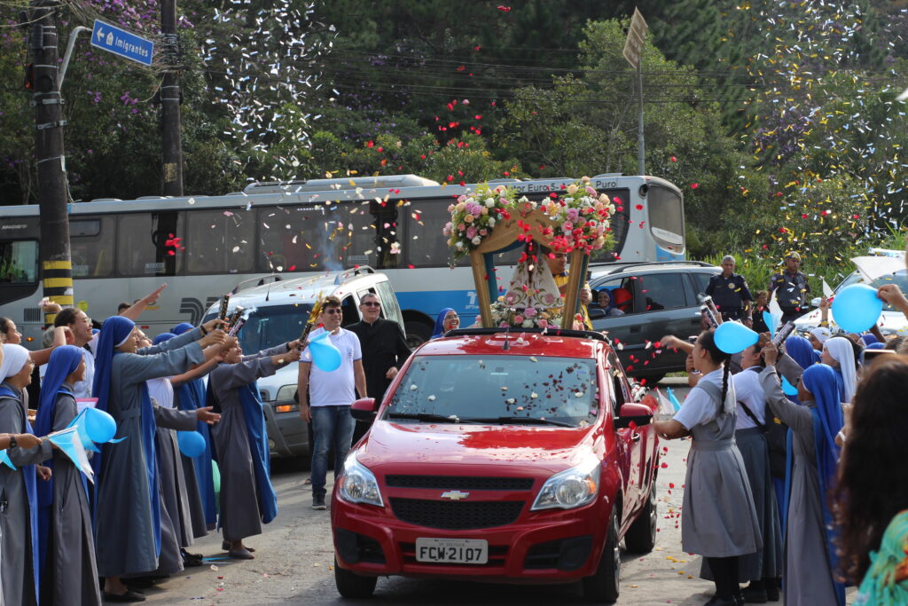 Su visita trajo grandes gracias a toda nuestra Provincia, comenzando por nuestro Aspirantado, que la recibió con filial devoción y alegría. También en el Colegio, reinó un espíritu de sorpresa y alegría por parte de los alumnos, que la acogieron tan calurosamente. Luego visitó nuestras comunidades hasta llegar al “Hogarcito”, donde nuestras Hermanas, las chicas y las empleadas estaban deseosas de recibirla. La Reina de Pará llegó finalmente a Barragem, barrio de San Pablo donde están nuestras casas de formación, el Monasterio y la Casa Provincial. Muchas religiosas, novicias, aspirantes y laicos esperaban ansiosos para iniciar la solemne procesión hacia nuestro convento en São Paulo – BR.