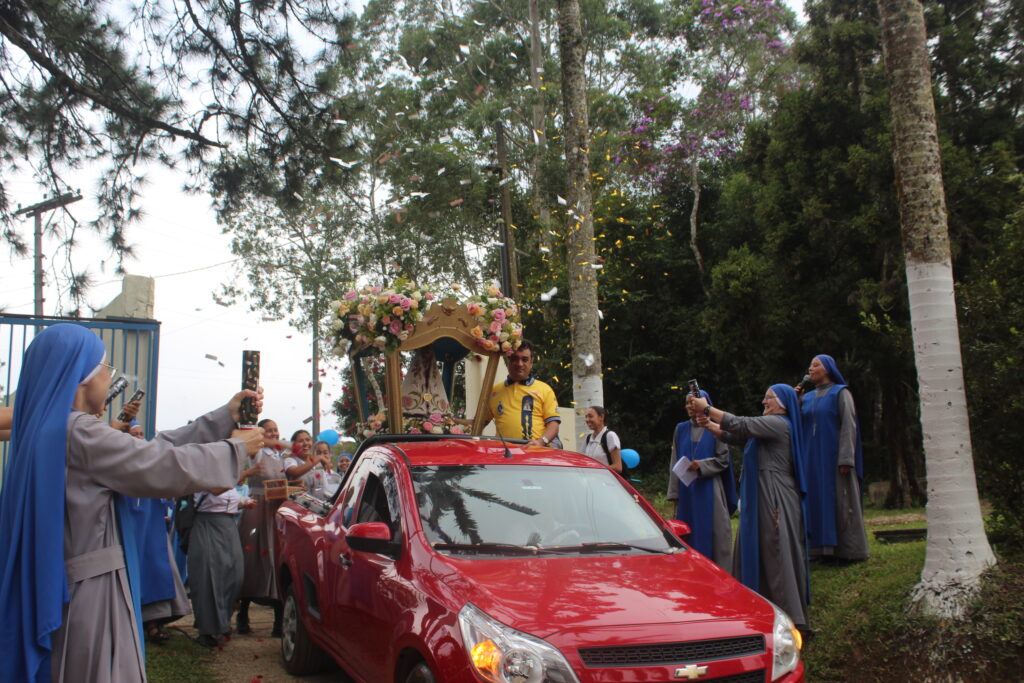 Su visita trajo grandes gracias a toda nuestra Provincia, comenzando por nuestro Aspirantado, que la recibió con filial devoción y alegría. También en el Colegio, reinó un espíritu de sorpresa y alegría por parte de los alumnos, que la acogieron tan calurosamente. Luego visitó nuestras comunidades hasta llegar al “Hogarcito”, donde nuestras Hermanas, las chicas y las empleadas estaban deseosas de recibirla. La Reina de Pará llegó finalmente a Barragem, barrio de San Pablo donde están nuestras casas de formación, el Monasterio y la Casa Provincial. Muchas religiosas, novicias, aspirantes y laicos esperaban ansiosos para iniciar la solemne procesión hacia nuestro convento en São Paulo – BR.