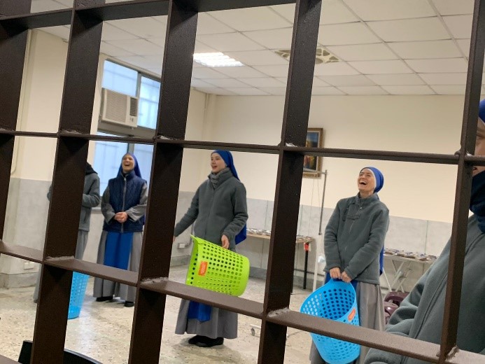 Después de una breve bienvenida introduciendo a grandes rasgos la vida contemplativa y cuál es su principal ocupación y su importancia, tuvo lugar la exposición del Santísimo Sacramento. Las hermanas junto con los jóvenes cantaron entonces la hora menor de Tercia, y luego, el sacerdote encargado del grupo, presidente de la Sociedad para las misiones pontificias, dio la Bendición Eucarística.
