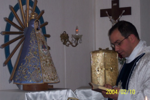 Le preguntamos al Padre Buela si le parecía que la Casa General tuviera como Patrona a la Virgen de Luján y dijo que sí. Creo que fue él quien nos dijo que compráramos la imagen que llevaríamos a Italia al Sr. Miguel Cárdenas, que era quien las hacía en ese momento para la Basílica de Luján. Esas imágenes tenían el valor de estar hechas con un molde que se hizo de la misma Imagen Milagrosa, lo cual hacía que las réplicas fueran muy similares a su precioso original.