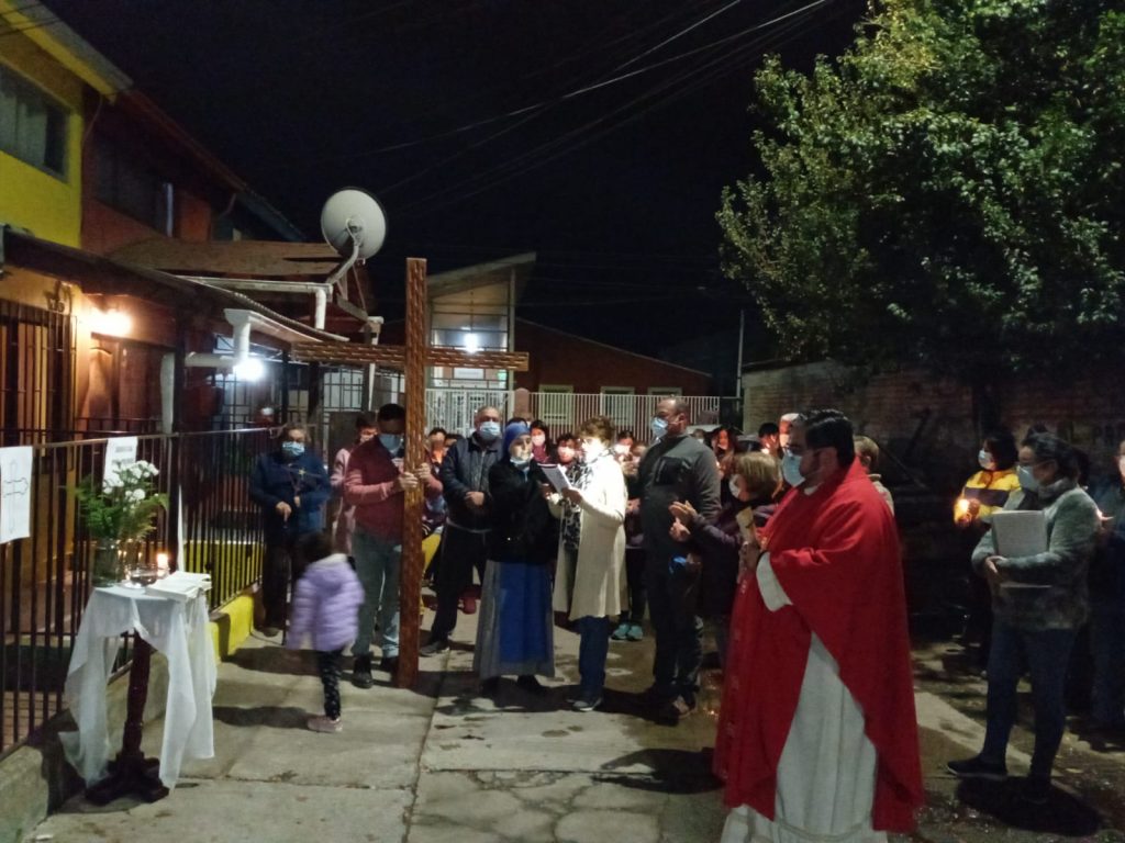 El Jueves Santo, día de la Institución de la Eucaristía y del sacerdocio, tuvimos la Misa en la parroquia y rezamos especialmente por el aumento de las vocaciones sacerdotales. Por la noche se hicieron distintos turnos de adoración en la catedral para acompañar a Jesús en su Pasión y con diferentes grupos participamos de varias Horas Santas guiadas, nosotras guiamos una entre meditaciones y cantos. El Viernes Santo, después de la celebración de la Pasión, rezamos el vía crucis por las calles de la Parroquia. Los fieles participaron con gran devoción y, en cada estación, las distintas familias del barrio nos esperaban afuera de sus casas con un altar para recibir la bendición del sacerdote sobre las familias y el hogar.