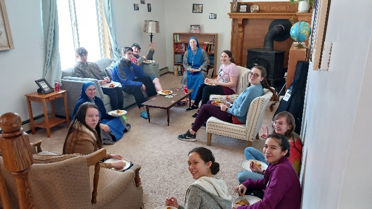 Cada semana era una sorpresa, para ellos y para nosotras… Un jueves lo tuvimos que cancelar porque hubo una tempestad de nieve y era muy peligroso para todos conducir por las carreteras. Así que el jueves siguiente les exigió mucho más, ya que tuvimos que juntar las competencias de dos noches. Pero también la generosidad con que respondieron nos impresionó mucho a las hermanas, a los padres y a los jueces invitados. Ciertamente la noche de los deportes fue la más esperada.