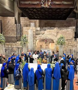 Las palabras del Arcángel Gabriel a María en la Basílica de la Anunciación el pasado 25 de marzo resonaron con una fuerza especial este año. La Santa Misa tuvo lugar en la Iglesia superior que guarda como en un cofre parte de la Casa de María, el lugar Santo sobre el cual el cielo se rasgó…y el Verbo de Dios se hizo carne, en el seno purísimo de María.