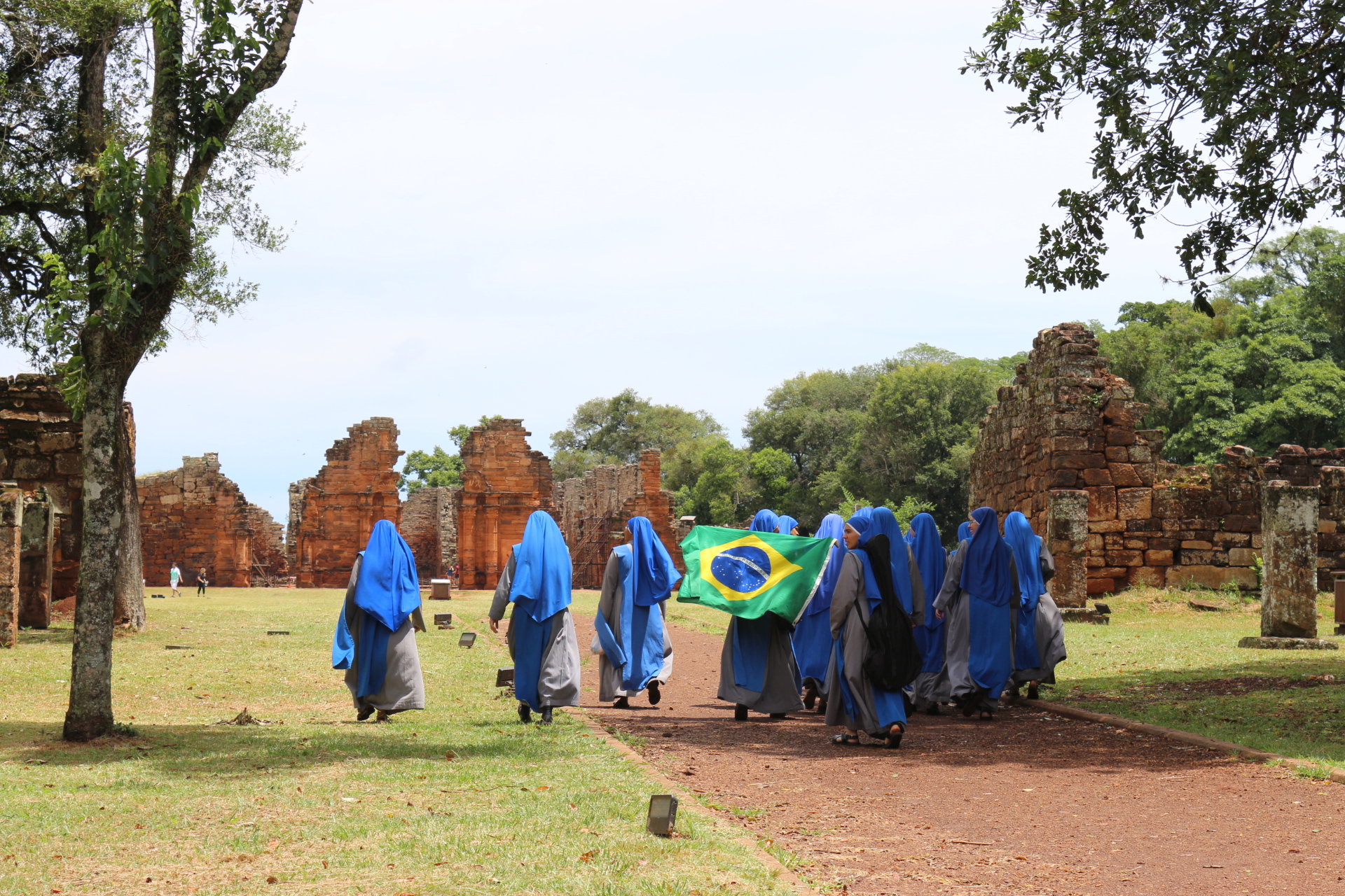 El programa de nuestro viaje-peregrinación, además de visitar San Rafael y la mayoría de nuestras casas en esta provincia, incluía la visita a algunas de nuestras casas de la provincia de Nuestra Señora de los Buenos Aires. Recordamos de modo especial la inolvidable y providencial Santa Misa en la cripta del Santuario de la Virgen de Luján, con renovación de votos de dos de nuestras hermanas; visitamos también la Villa de la Quebrada en San Luis, el Santuario de la Virgen de Caacupé en Paraguay, asimismo las Reducciones Jesuíticas y las Cataratas del Iguazú.